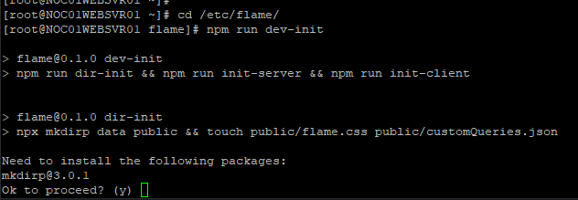 NOTE: in my HomeLab environment I pass all internet traffic through a web proxy. If you are running a similar setup then the installation of Flame using the repository scripts will not work. I was unable to diagnose why the dependencies could not be downloaded through a proxy. My solution to this was to have the web server in a network with direct access to the internet to install the dependencies.