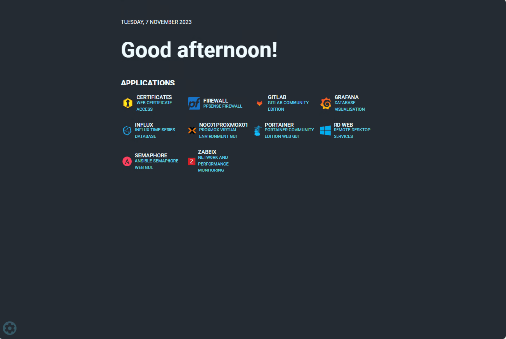 My initial criteria was that I wanted a simple and easy to navigate static dashboard that could be the default web page displayed on all machines within my HomeLab environment. A static dashboard can be a great way for you to keep a track and have easy access to all of the different web based services you are running in your HomeLab environment.