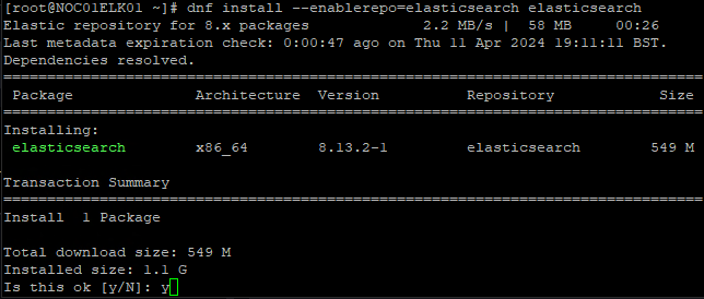 - Firstly we need to import the GPG (GNU Privacy Guard) key so that when we use the DNF package manager to download and install the Elasticsearch application we can confirm that none of the binary files have been altered. To import the key use the following command: