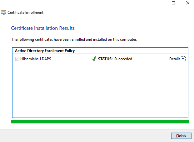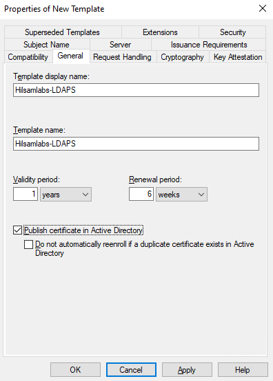 Now that we have a correct template we can issue a certificate to our DC using that new template: