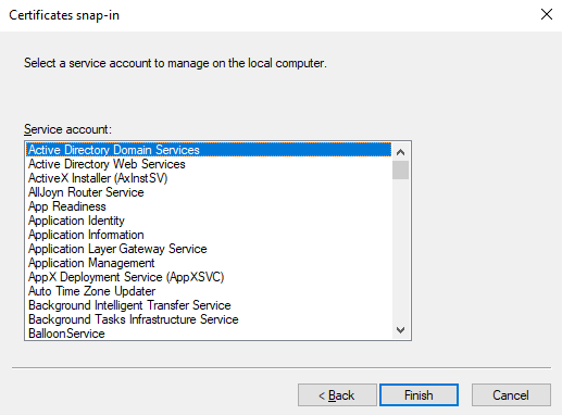 - Select the ‘Active Directory Domain Services’ account from the list.
