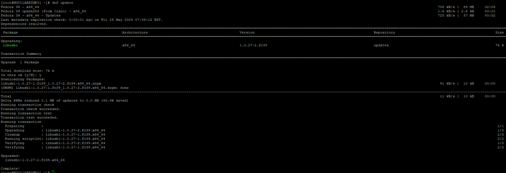 Now use the following command to confirm that Fedora 39 is as up to date as possible: