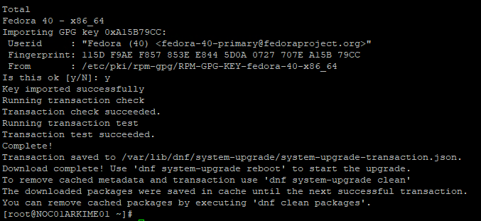The final step to upgrade to Fedora 40 is to enter the following command to reboot the server and carry out the system upgrade: