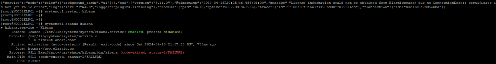 I restarted the Kibana service however, it still could not start and I was still getting the same ‘ConnectionError’.