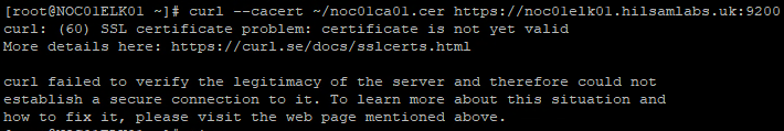 With time across the domain sorted, I re-ran the CURL command and the certificate is now valid so I can properly CURL to the Elasticsearch API.