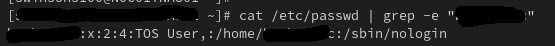 cat /etc/passwd | grep -e “<USERNAME>”