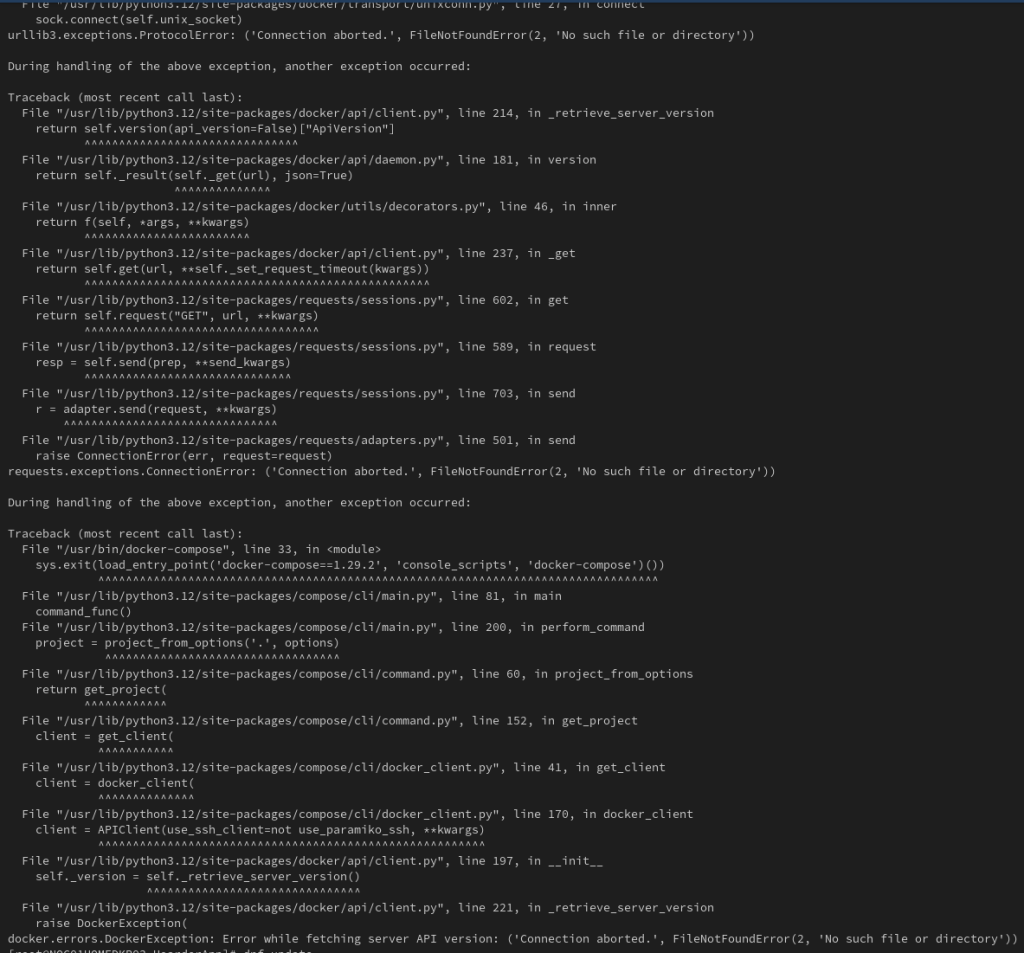 When I tried to use the following command to use Docker Compose to start my Docker containers I got the errors show in the image below.