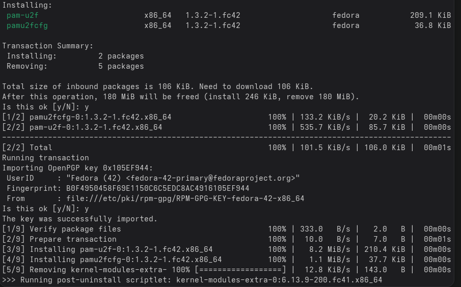 Configuring PAM Fedora uses authselect to manage PAM authentication profiles. By default authselect adds the FIDO token as sufficient, this means the token can allow login without the need for the password, and then also means if you don’t have the token the password will allow login. If you want to make this FIDO token as part of MFA then you need to set it to required so that both the token and the password are required for a successful login. My recommendation is to use sufficient first to ensure functionality and then move to required if 2FA is the goal.