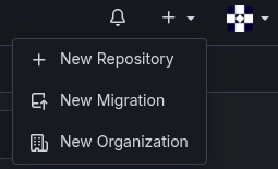 Within the Gitea web GUI select the + icon and then select New Repository.
