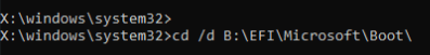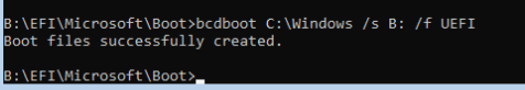 cd /d B:\EFI\Microsoft\Boot\ bcdboot C:\Windows /s B: /f UEFI