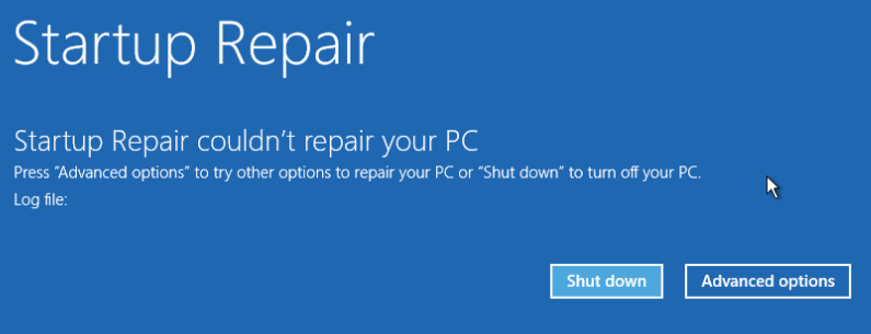 Unfortunately in my the issue isn’t able to be solved with Startup Repair.