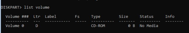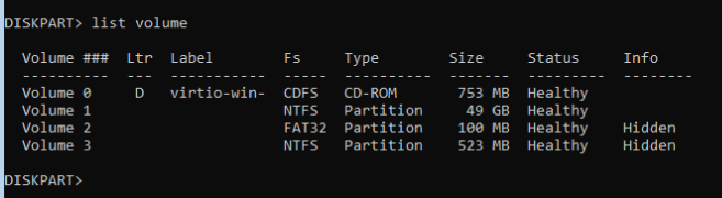 Back in the VM Command Prompt use the following commands and you can view the volumes within the VM: